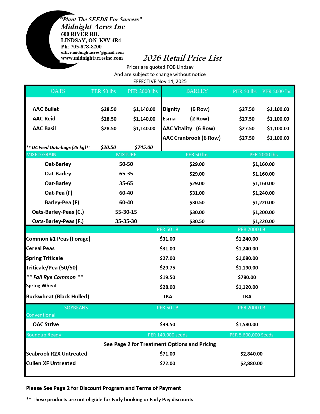 Early order and Early pay discounts available